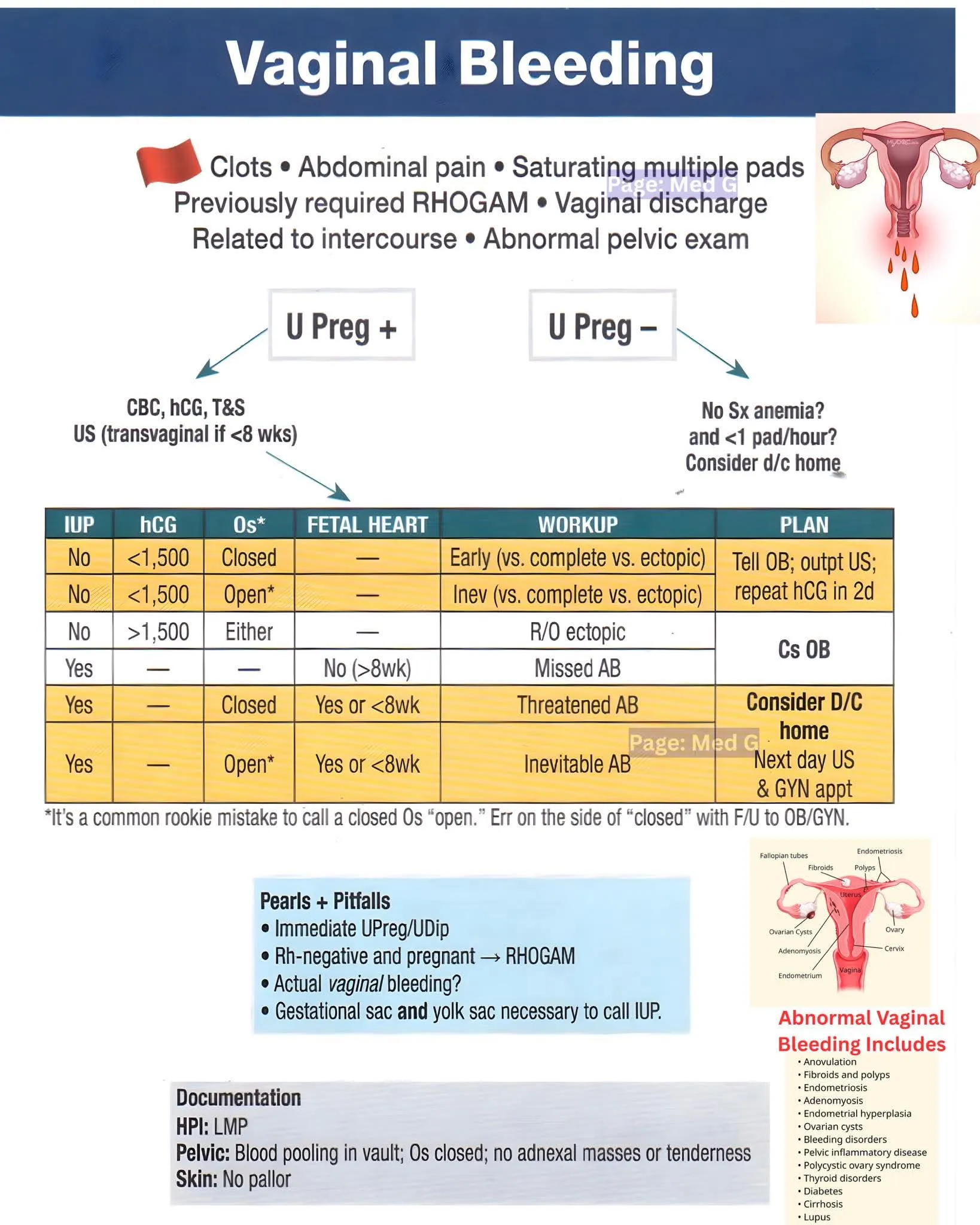 가임기 여성은 반드시 질출혈의 원인인 임신을 배제하기 위해 임신 검사를 한다.