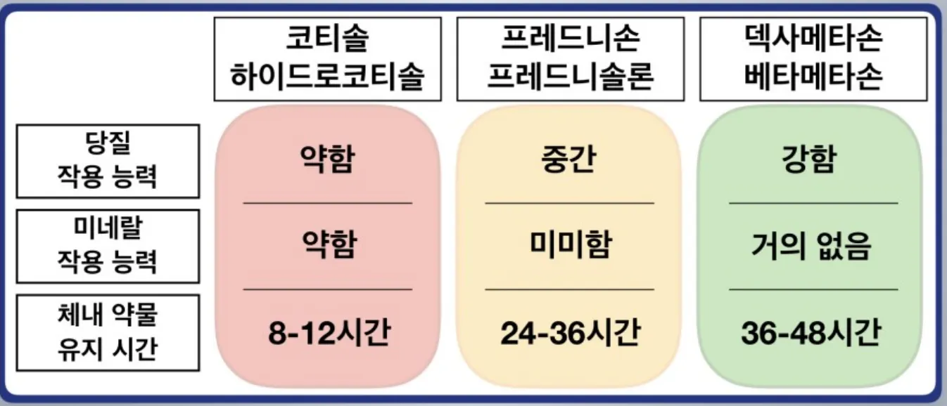 Glucocorticoid : Cortisol (천연), Prednisolone, methyl prednisolone
