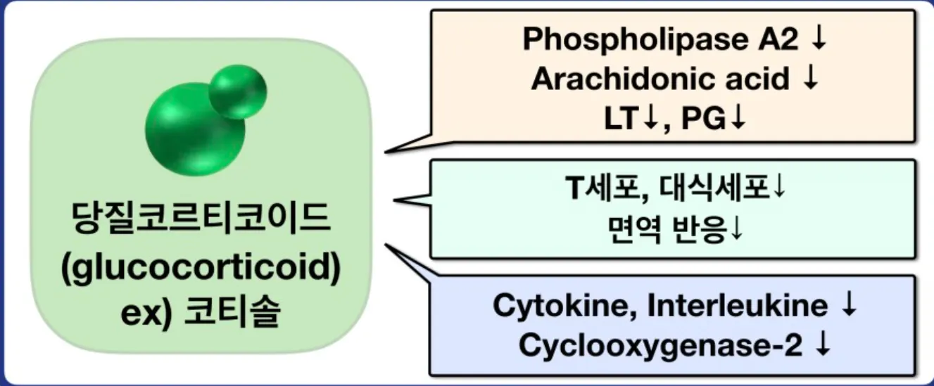 Glucocorticoid : 당대사, 단백질 분해, 항염증반응, 면역억제