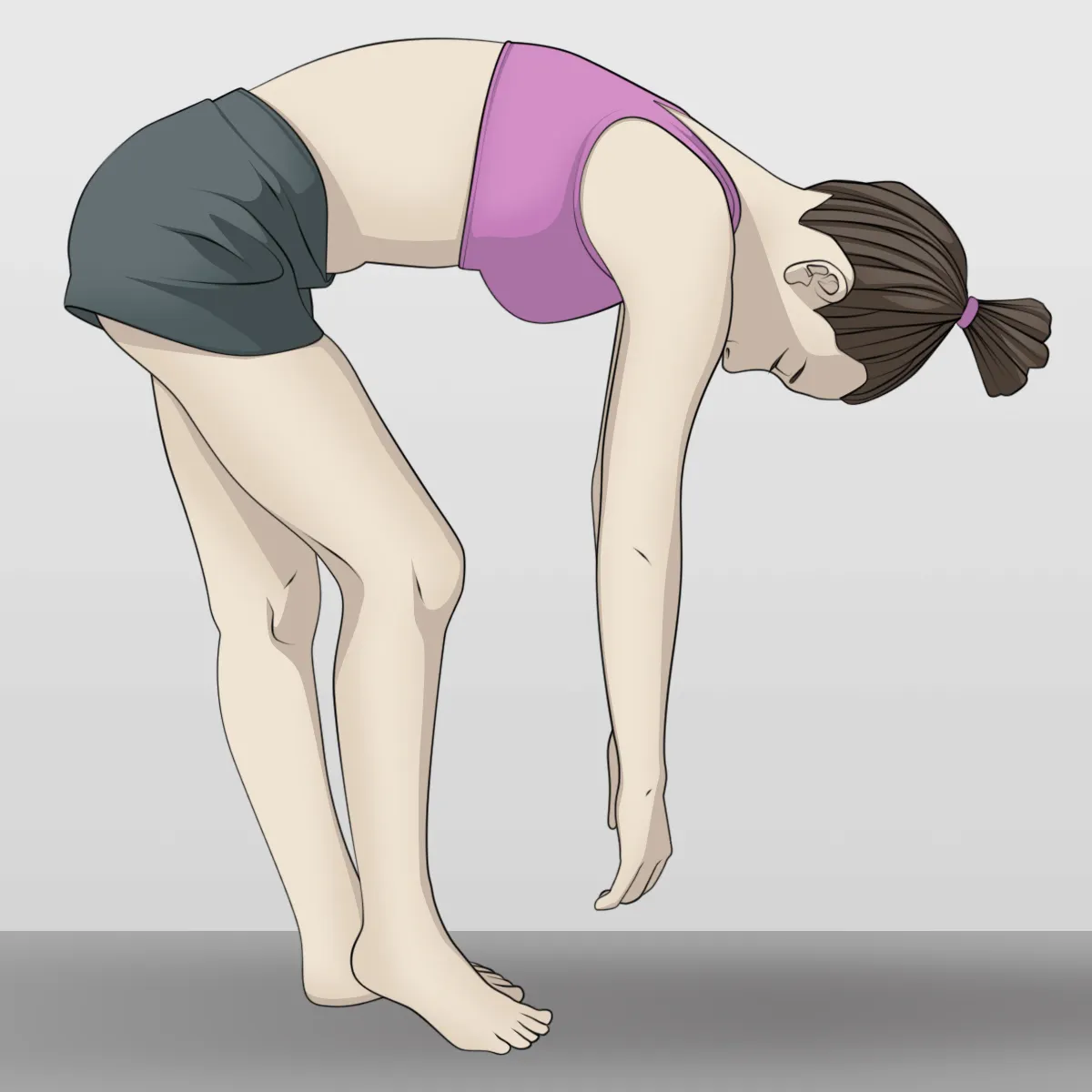허리를 구부려 발가락을 손가락으로 터치하게 한다