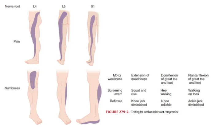 2. S1 nerve root : L5~S1에서 눌린 후 S1~S2으로 나온다 → 종아리 뒤쪽, 발바닥 저림감
