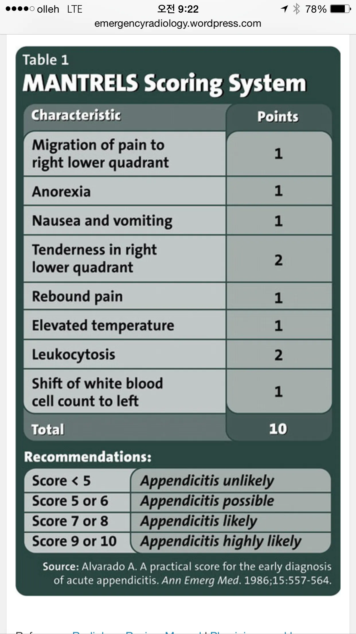 Acute appendicitis 케이스와 관련 learning issue입니다.