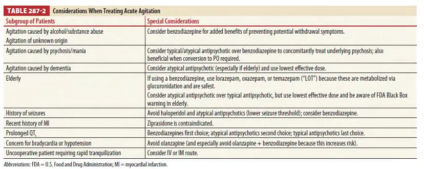 BDZ → Atypical antipsychotics → Typical antipsychotics 순으로 사용.