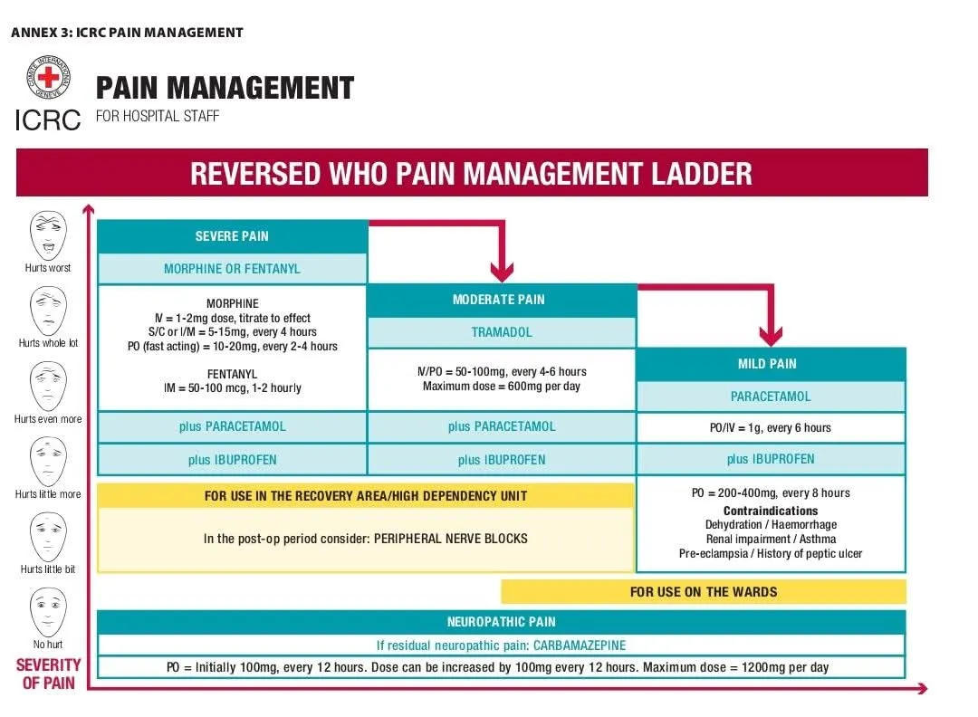 약한 진통제로 시작하여 점점 강력한 약물로 바꿔 가는 방법은 환자로 하여금 불필요하게 오랫동안 고통에 시달리게 하므로 처음부터 통증의 강도에 맞는 적절한 진통제를 선택하는 것이 좋다.