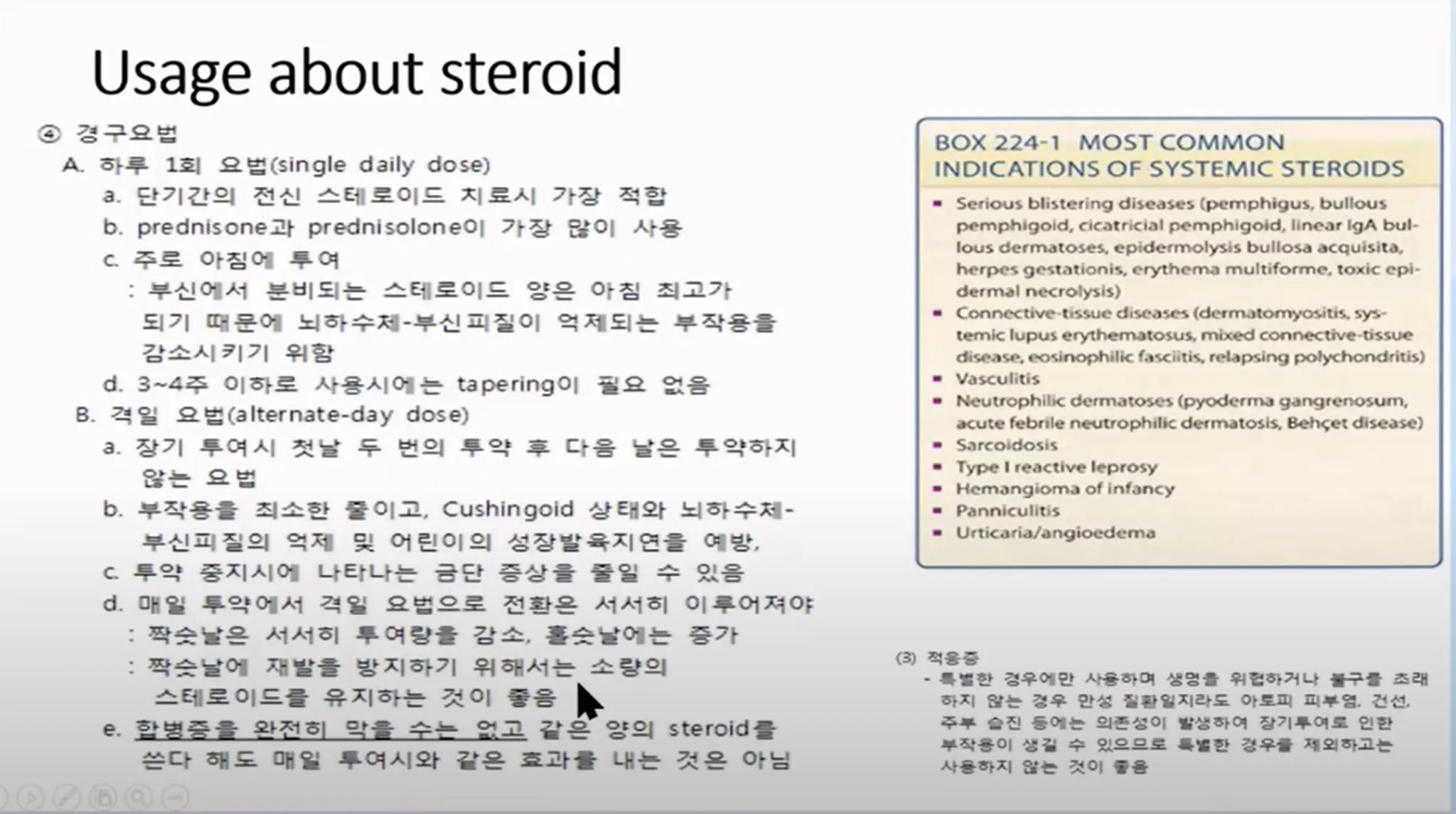 20 mg 이상으로 3주 이상 사용 시 Adrenal suppression 가능성 있음