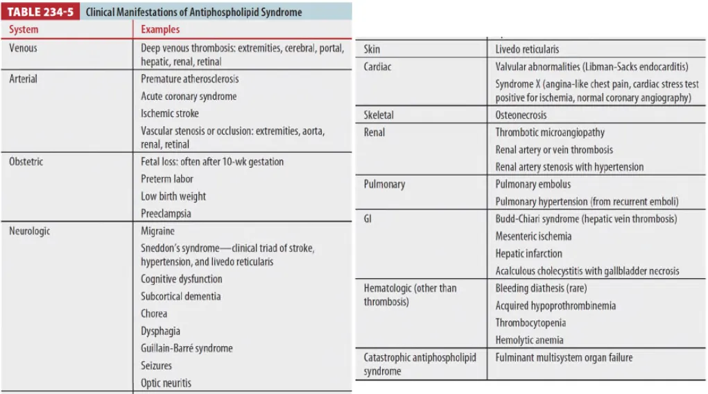 (5) Antiphospholipid syndrome (APS) (Table 234-5)