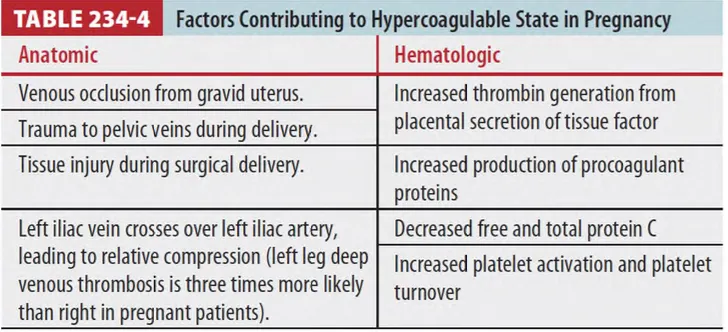 PTE보다는 DVT와 매우 큰 관련, 임신 중 preeclampsia, 태반 파열, fetal growth restriction, 사산 초래