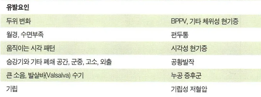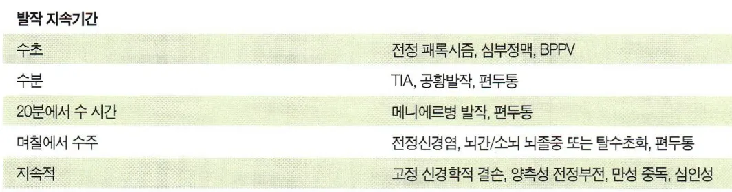 : Migraine(가장흔함), Meniere, vertebrobasilar TIA, episodic ataxia