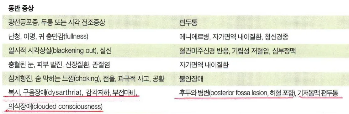 간혹 Migraine, Post. circulation lesion 도 가능함.