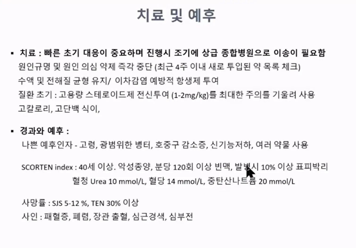 (1) 주로 약 (sulfa and penicillin anti, anticonvulsants, NSAID 등)