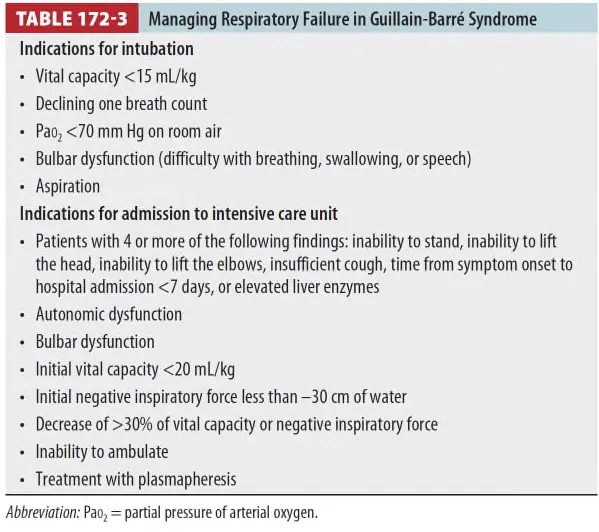 1/3에서는 respiratory compromise → ventilator 필요 & Autonomic dysfunction 또한 존재한다.