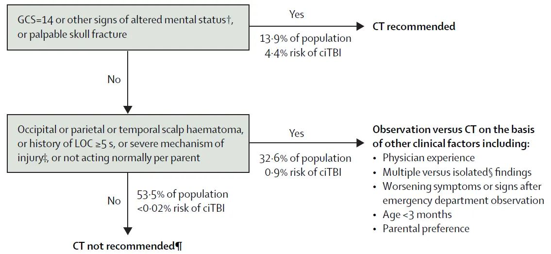 2세 미만에서 두피혈종은 두개골 골절 및 두개내 출혈의 위험성과 연관