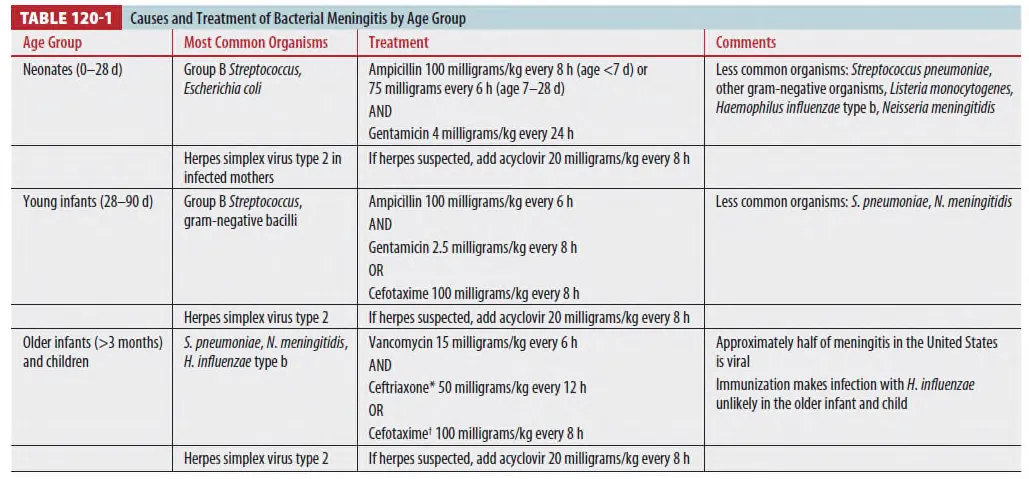(1) Age에 따라 pathogen이 다르므로 Empirical treatement regimen이 다름 (Table 120-1)