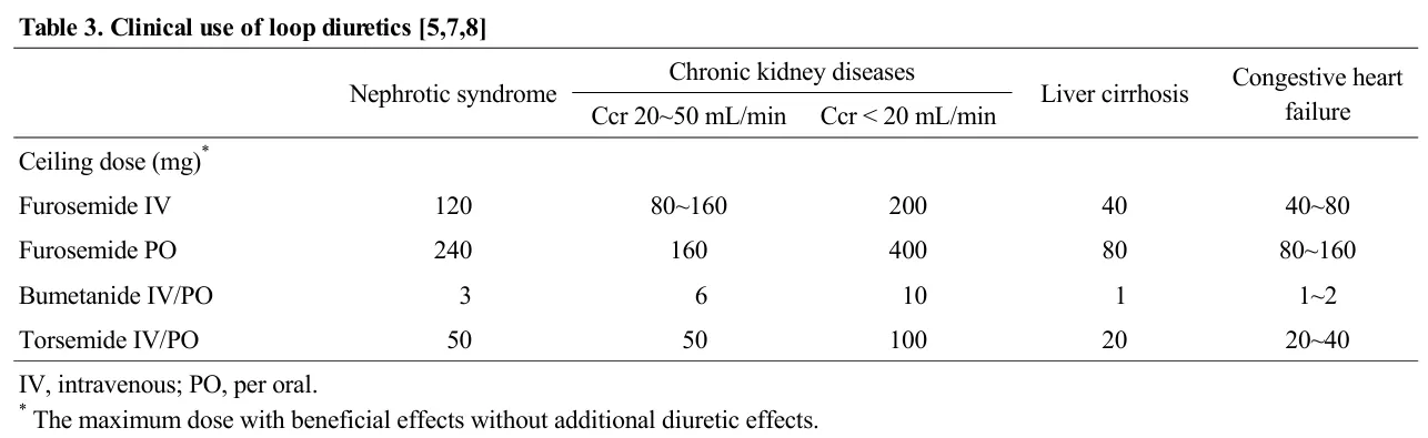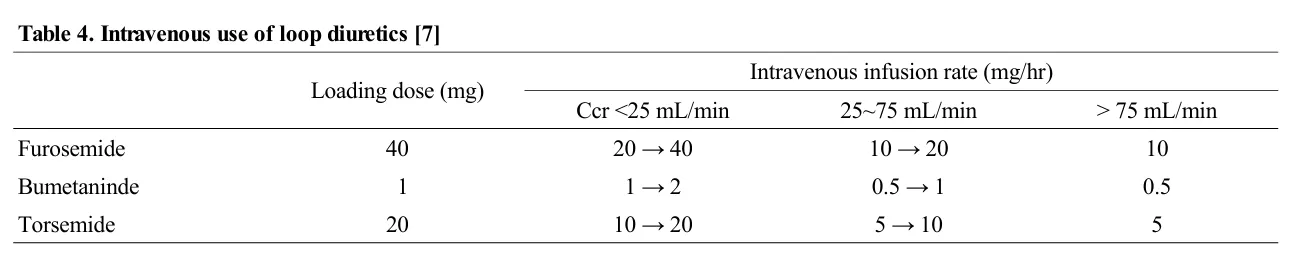 을 시도할 수 있다. 고리 이뇨제의 정주 요법은 표 4와 같이