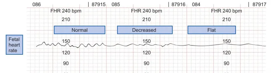 ② 태아 심박변이 감소 (Decreased fetal heart rate variability) : 빈맥, 서맥