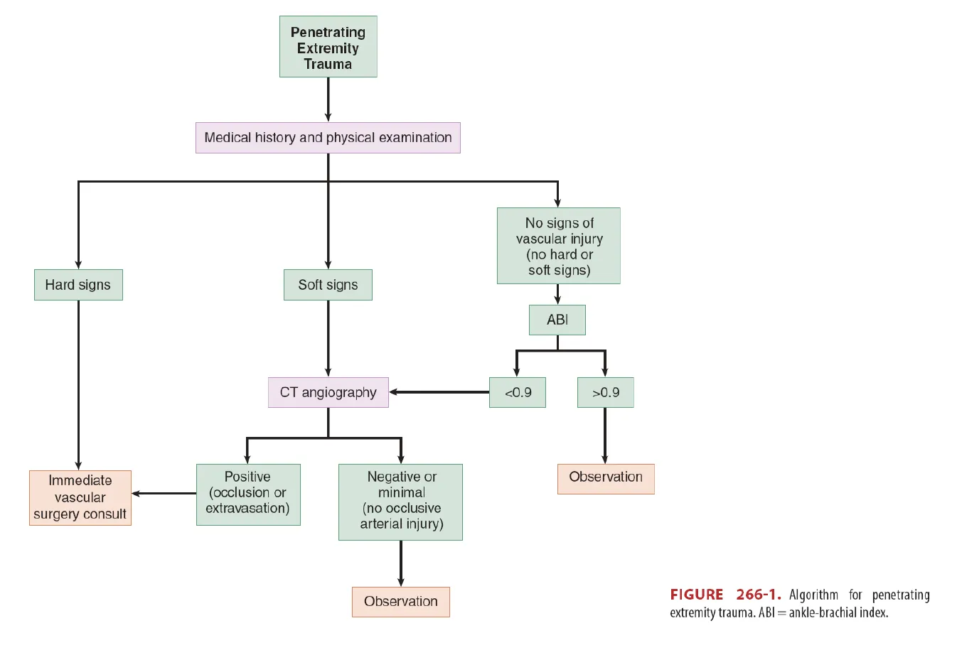 2. 모든 penetrating extremity trauma환자는 지연되거나 놓친 손상을 발견하기 위해 경과관찰을 해야함.