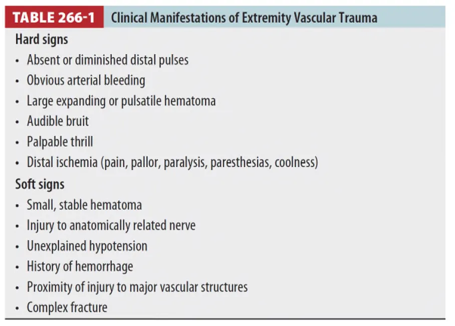 1. 동맥손상 시의 hard signs은 즉각적인 surgical consultation이 요구되며, 추가적인 imaging, surgery,