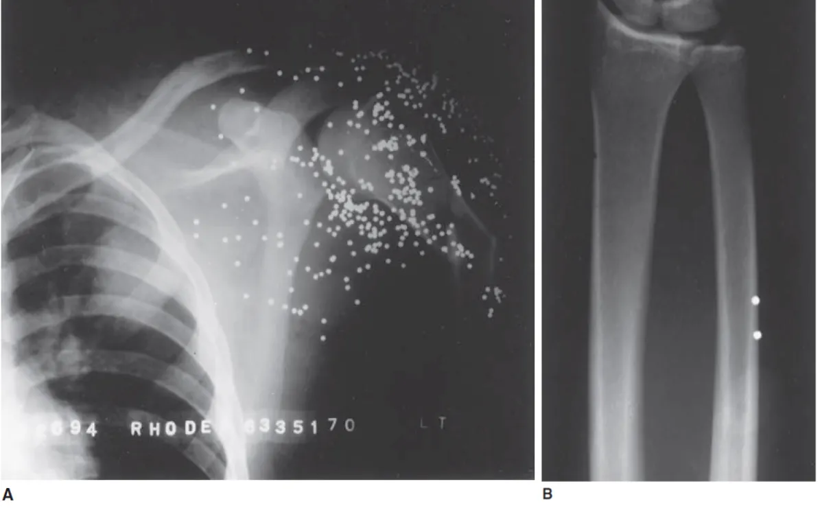 *그림 은 산탄총에 의한 를 나타내며 뼈 * 226-3 injury 226-3 injury soft tissue, 등의 구조에 총탄이 잔류할 수 있음.