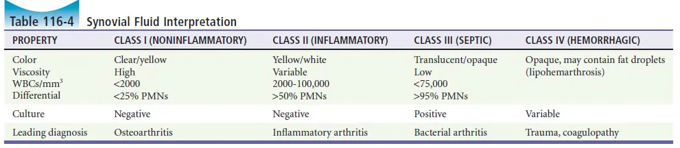 Joint aspiration and analysis가 진단에 필수적이지만 sensitivity는 높지 않다.