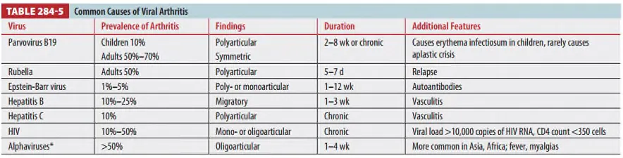 * m/c cause of viral arthritis in US : parvovirus B19, rubella, hepatitis B