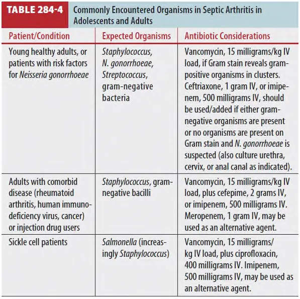 젊고 성적 활동이 왕성한 성인에서 septic arthritis의 가장 흔한 원인이다.