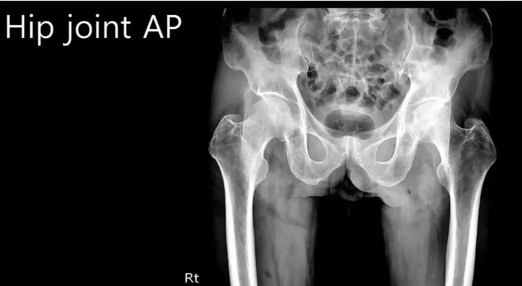 올바른 X-Ray는 레서트롯 센터가 조금 튀어나오고, 이를 통해 힙조인트의 명확한 모습을 확인할 수 있다. 53
