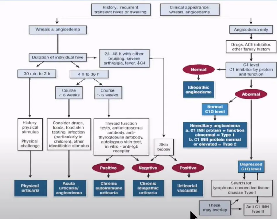 두드러기, 혈관부종 감별 시 다음 알고리즘 활용이 도움됨.