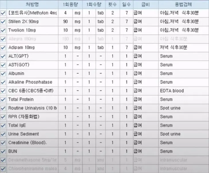 일반적인 랩 검사, 전신 스테로이드, 항히스타민제 3종 처방 고려함.