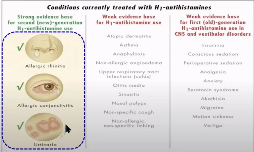 1세대 항히스타민제는 운전, 기계조작, 고령자 낙상 위험 등 고려해야 함