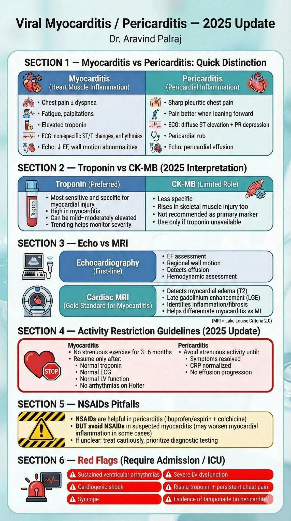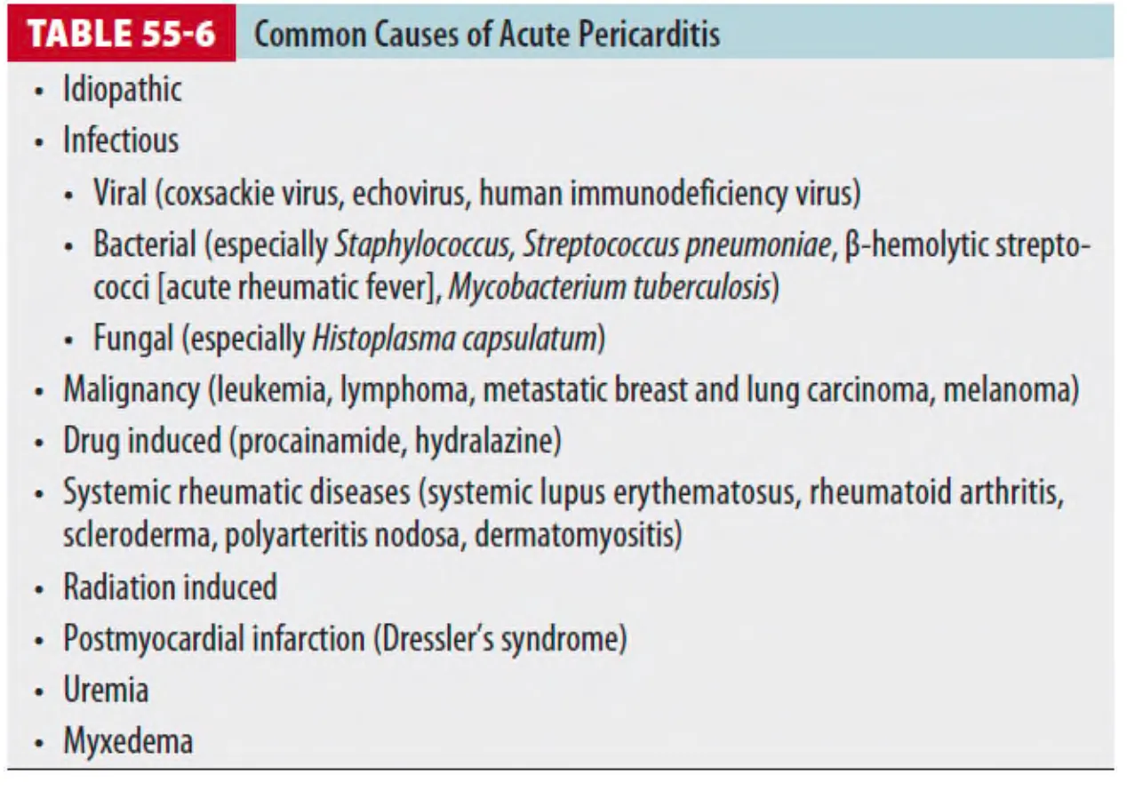 1 Pericarditis는 대부분 idiopathic이나 viral로 1~2주 정도 증상이 지속되며,