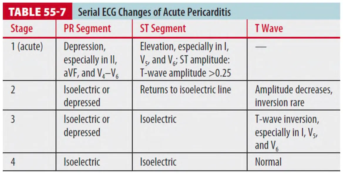 1 Serial ECG를 통해서 acute pericarditis를 진단할 수 있으며 4개의 stage로 나눌 수 있다.