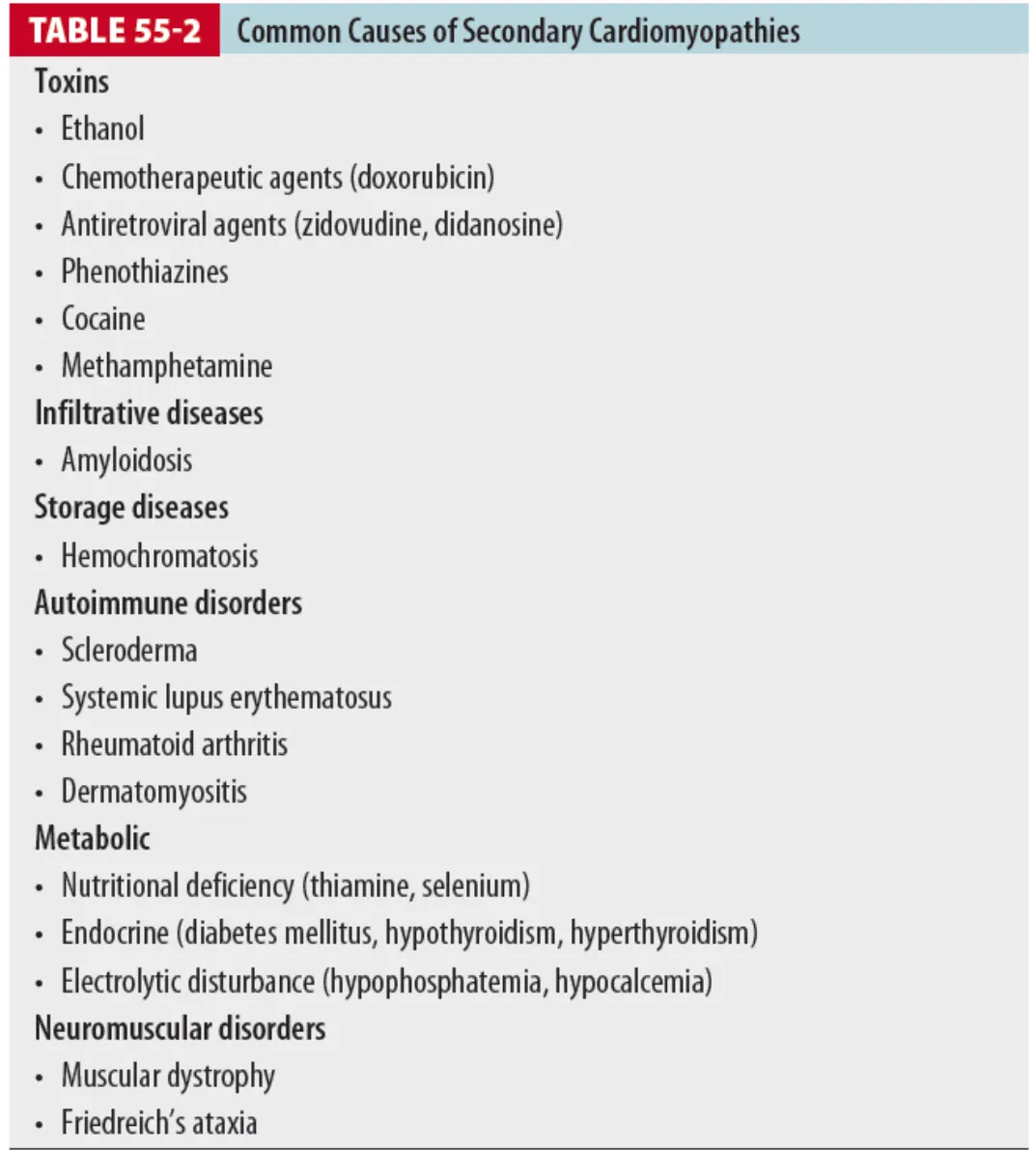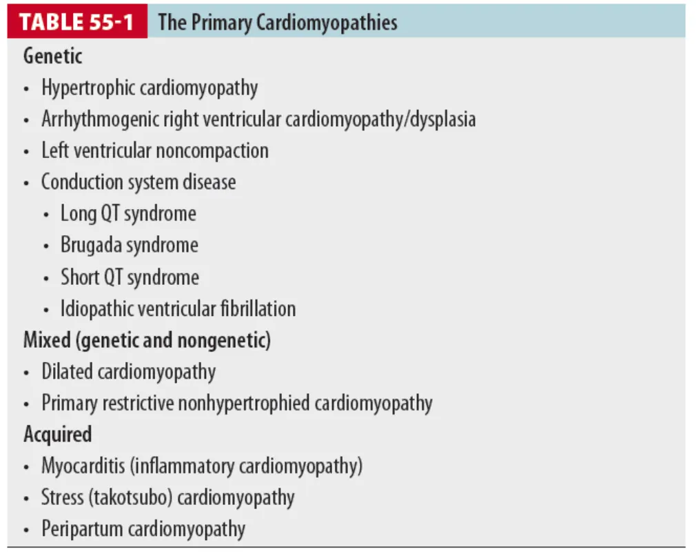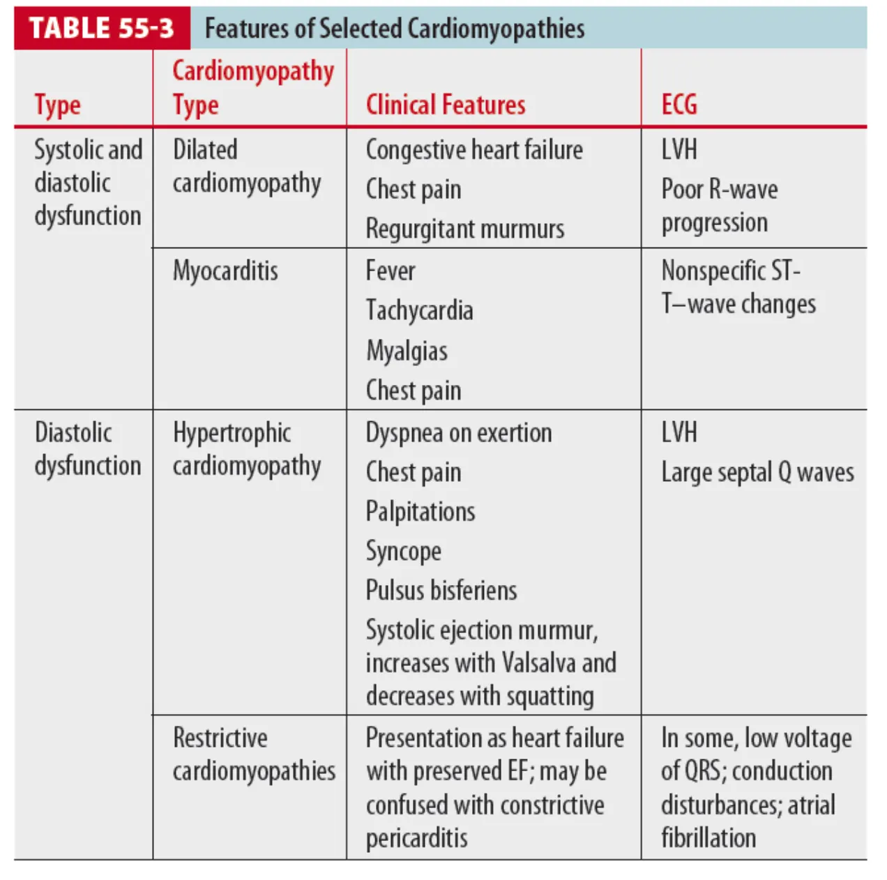모든 Cardiomyopathy에 대하여 다룰 수 없기 때문에, 위의 table 55-3에 소개된 cardiomyopathy에