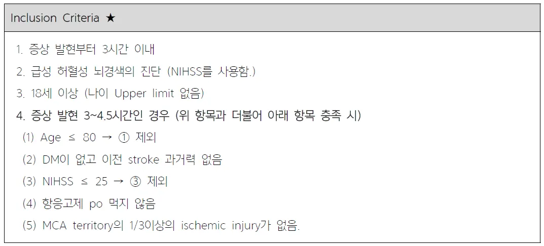 for IV Alteplase ★ (8판에서 2013 버전, 9판에서 2018버전으로 바뀜)