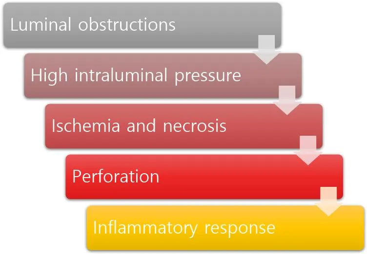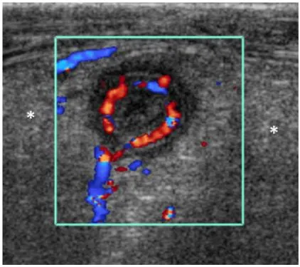 염증있는 appendix wall은 color doppler에서 hypremic 하다