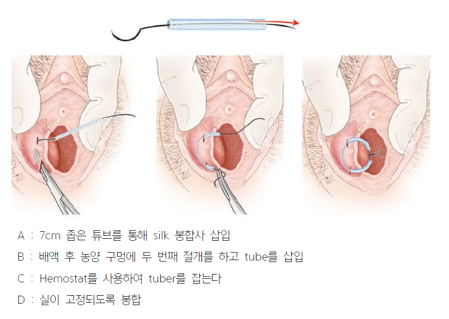 (7) 카테터 끝을 질 안으로 집어넣고 4~6주 동안 제자리에 둔다