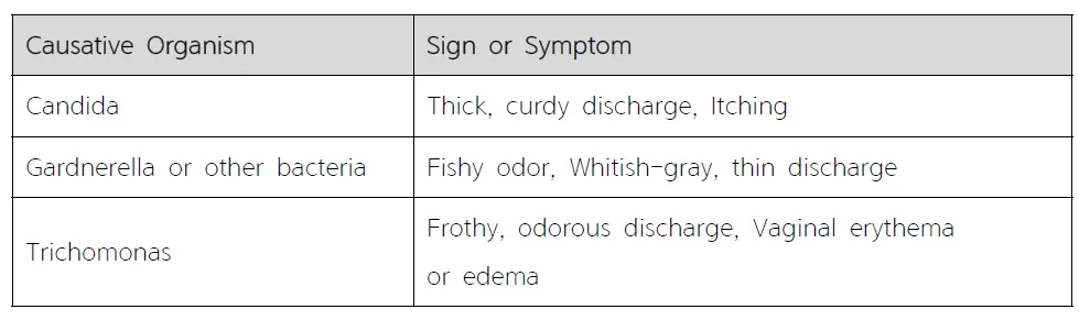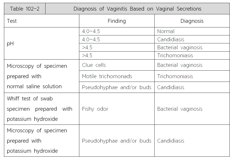 C5. Table 102-3. Vaginitis Signs and Symptoms