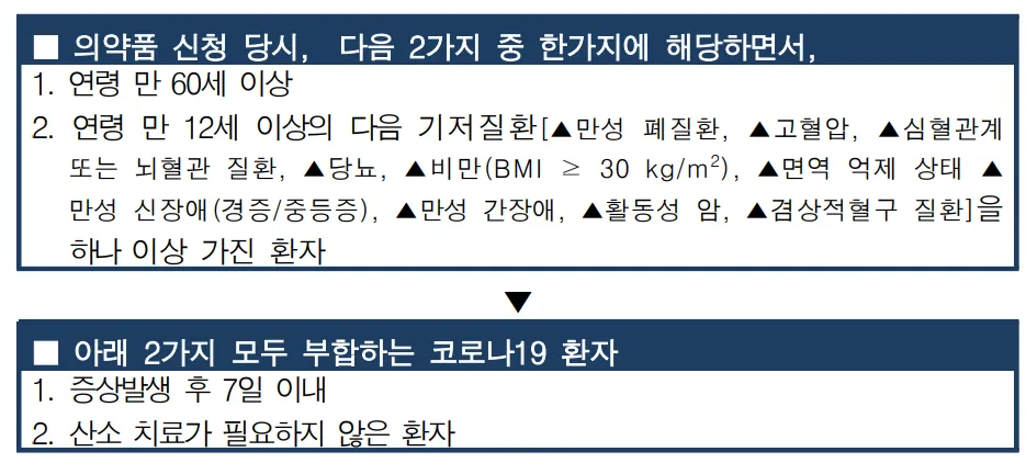 (2) 투여대상 2 : 치료제 처방 당시, 아래 기준을 충족하는 경증‧중등증 환자