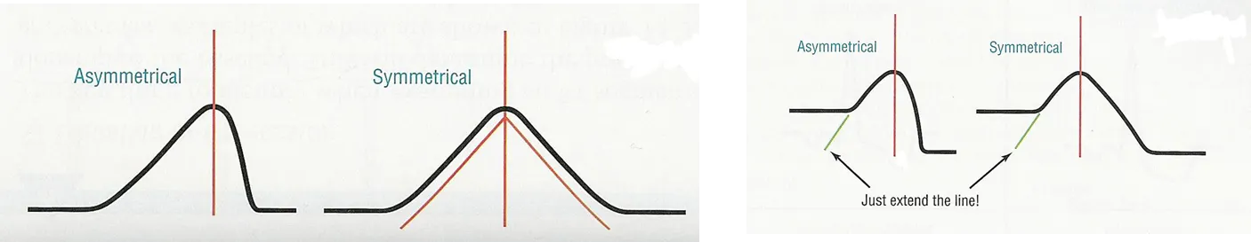 정상 T파는 비대칭이다. 완만하게 상승했다가 급격하게 하강한다.