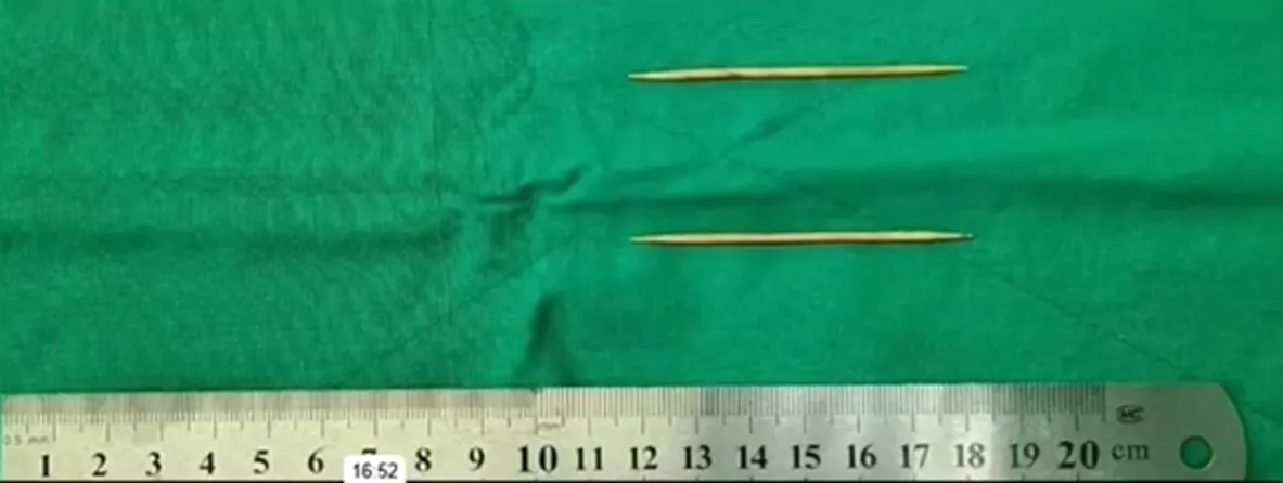 Toothpick can be difficult to perceive on CT, depending on the type of wood