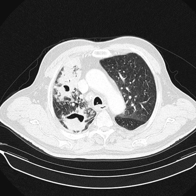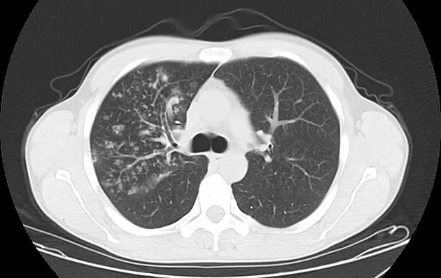 1) Patcy consolidation 또는 poorly defined linear and nodular opacities
