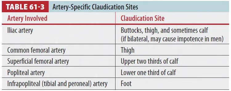 Claudication : cramp-like pain, 운동 시 악화되고 휴식 시 호전되는 통증