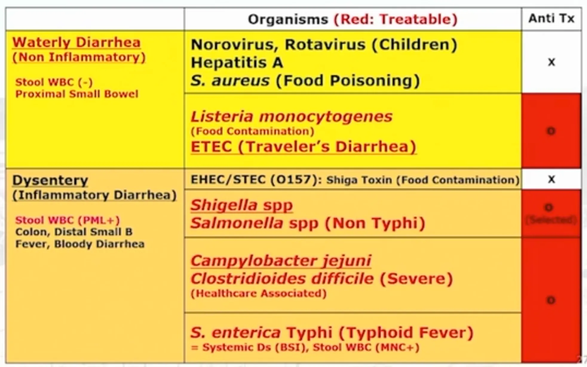 경험적 항생제 : FQ, Azithromycin, Rifaximin (동남아에는 FQ 내성 많은 Campylobacter가 많아 FQ는 비추천함)