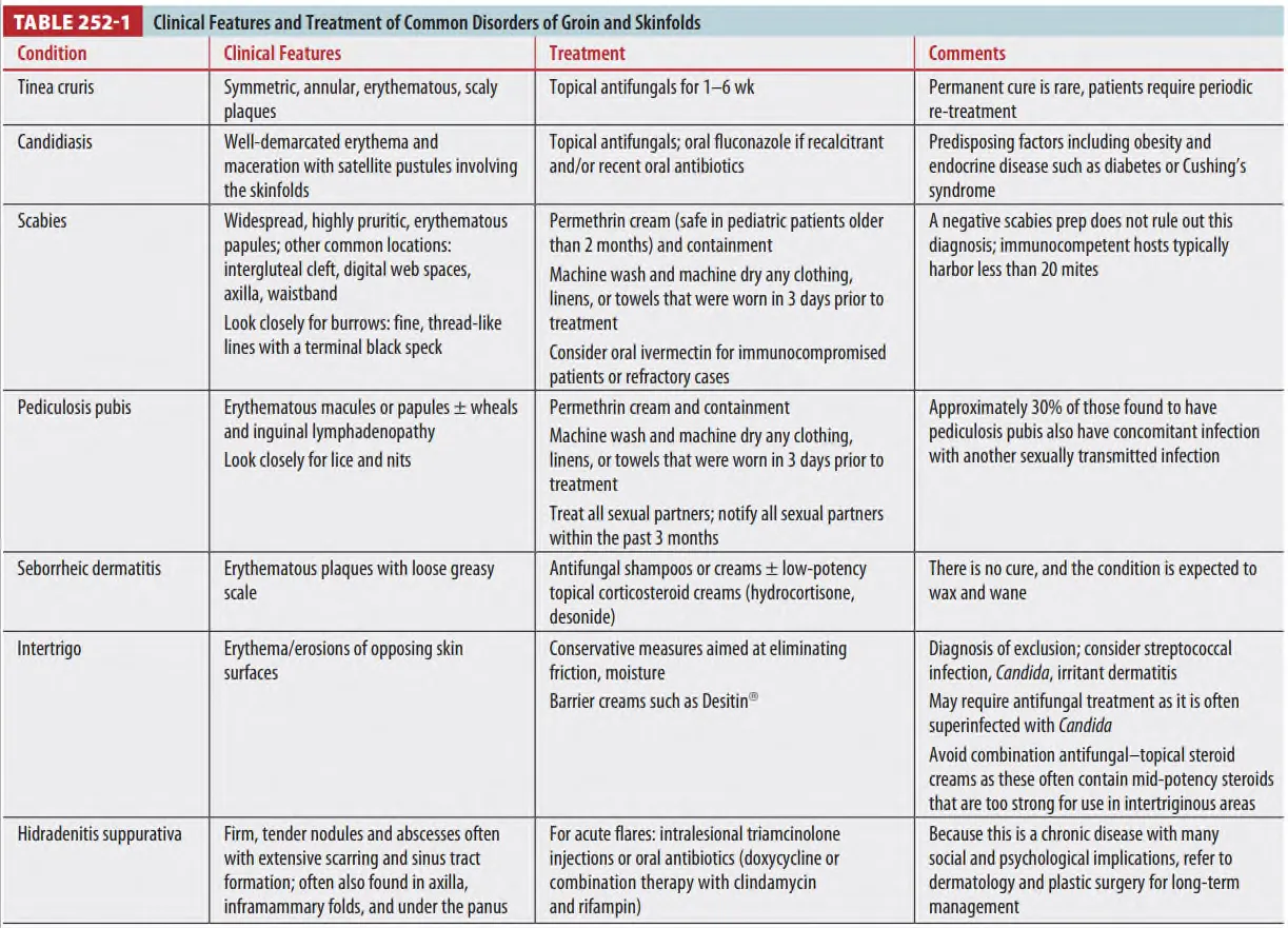 신체의 축축하고 외진 부위 (기저귀 부위, 외음부 및 사타구니, 귀두 밑, 유방 아래 등)