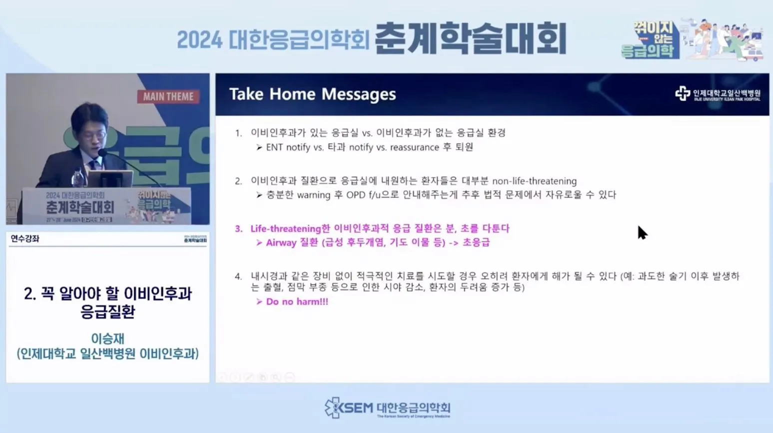 이비인후과가 있는 응급실인지 확인하는 것이 중요함.