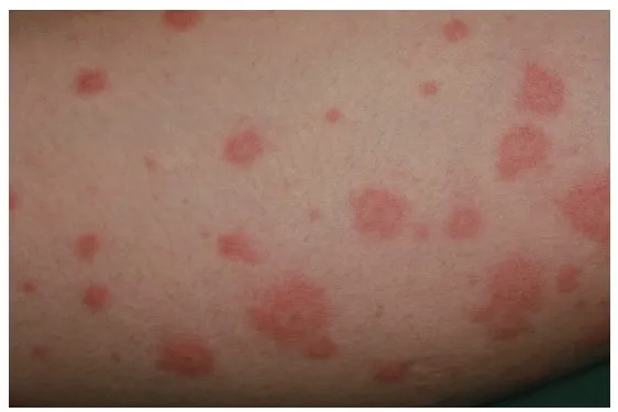 바이러스 감염 혹은 약물복용 후 피부에 표적모양 (도넛 모양)의 병터가 급성으로 발생하는 발진 질환이다.