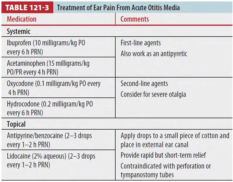 Topical analgesics는 perforation나 tympanostomy 시에는 금기이다.
