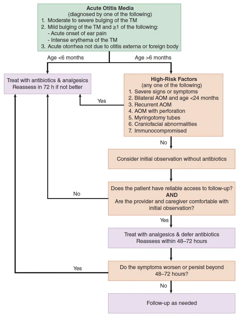 Fig 121-1. Algorithm for management of acute otitis media