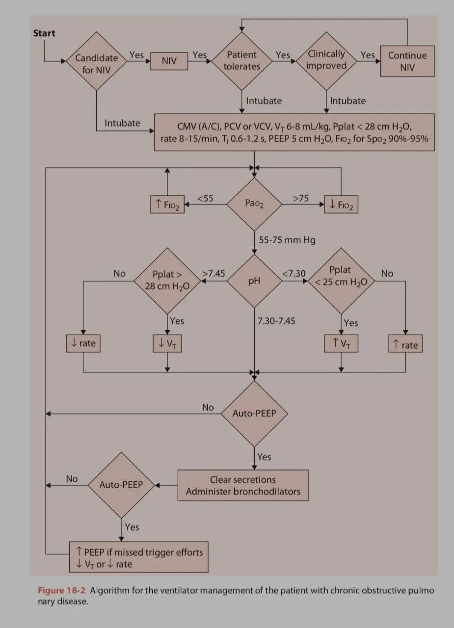 : WOB 이 증가하면 IPAP을 2~4분마다 2~3 cmH2O씩 상승. MAax IPAP 25 cmH2O