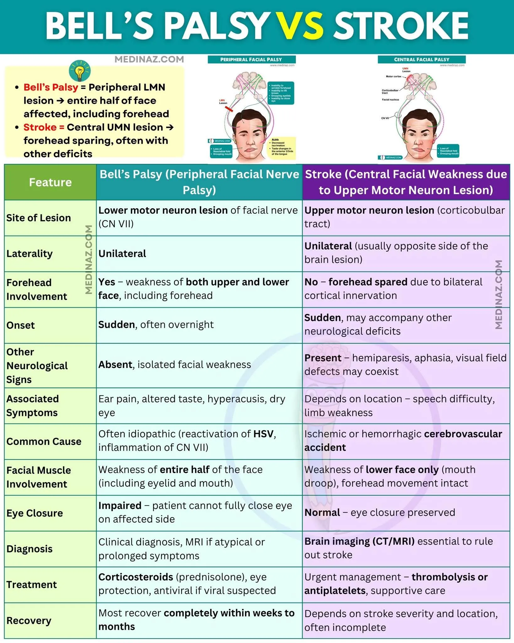 : CN VI 근처 stroke의 경우 Bell’s palsy처럼 보일 수도 있다.