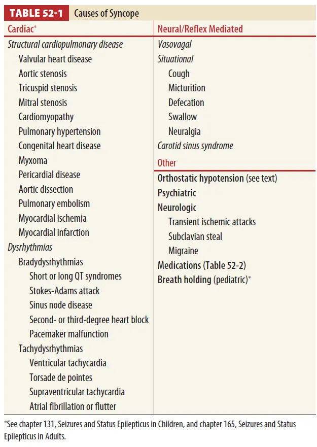 B1. Syncope의 주요 원인